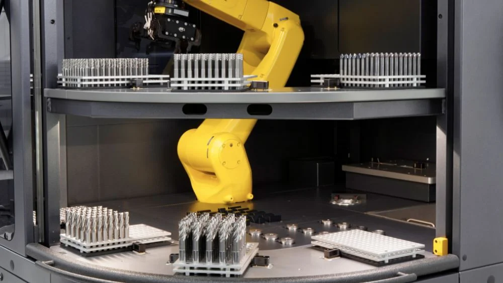 Bevor die Automatisierungslösung »roboSet 2« ihren Arbeitsprozess starten kann, muss lediglich die Bestückung der Werkzeuge über die Palettenverwaltung in der Software »pilot 4.0« durch eine Bedienerin oder einen Bediener definiert werden. Dank des Multipalettensystems (standardmäßig acht Paletten, optional sogar neun) können hohe Stückzahlen vollautomatisch abgearbeitet und dokumentiert werden. Insgesamt trägt ein gut organisiertes Palettenmanagement wesentlich zur Prozessoptimierung bei, verleiht Flexibilität, unterschiedliche Losgrößen zu handhaben und hilft, Ware effizienter und nachhaltiger zu bewegen.