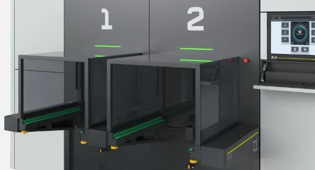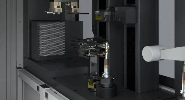 Montagemodule – zur Bearbeitung der Werkzeuge. Mit den variablen Montagemodulen können Werkzeuge innerhalb der »roboBox« z. B. ein- und ausgeschrumpft, abgekühllt, gemessen, vertikal ein- und ausgespannt sowie ein- und ausgepresst werden.