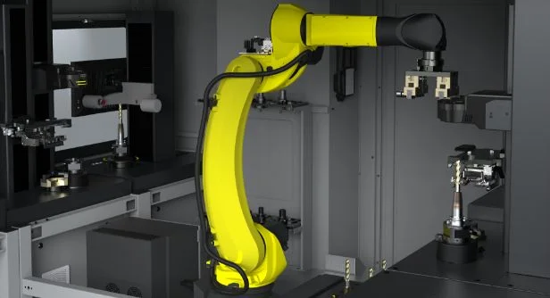Roboterbasismodul – bei dem der FANUC 6-Achs- Knickarmroboter die Werkzeuge greift und zuverlässig zwischen den verschiedenen Modulen transportiert.