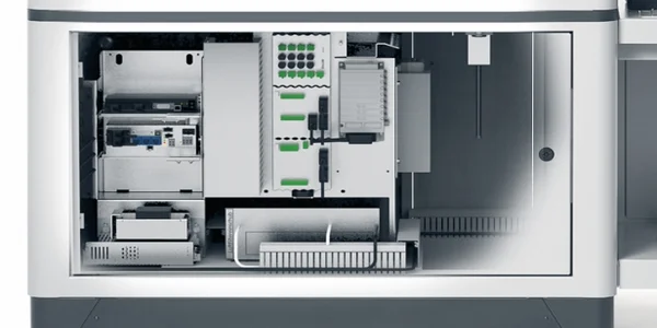Die Basis des Gerätes: Hier sind Rechner, Pneumatikelemente und Elektronik untergebracht. Gute Zugänglichkeit und optimale Belüftung.