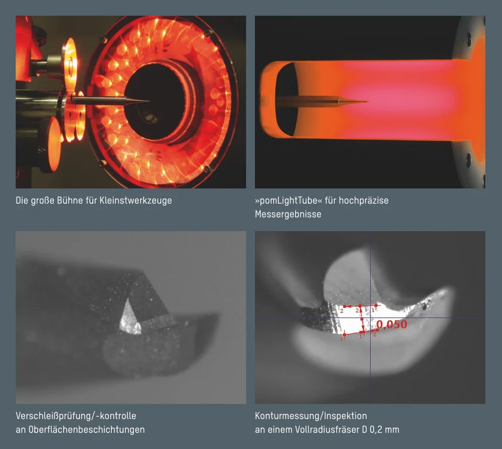 ZOLLER »pomBasicMicro« ist die kompakte und fertigungsnahe Inspektionslösung zum Prüfen und Messen von Mikrowerkzeugen. Eine spezielle hochauflösende Mikrokamera ermöglicht die exakte Inspektion von Werkzeugen kleinster Größe: Dabei erfasst der Objektiv-Zoom mit seiner Vergrößerungskapazität bis über 400-fach selbst Mikrowerkzeuge sehr detailliert.