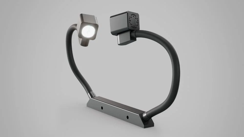 Die dimmbare Zusatzbeleuchtung bestehend aus zwei LED-Spots kann flexibel zum Werkzeug positioniert werden, um auch hinterschnittene Werkzeuggeometrien optimal auszuleuchten.