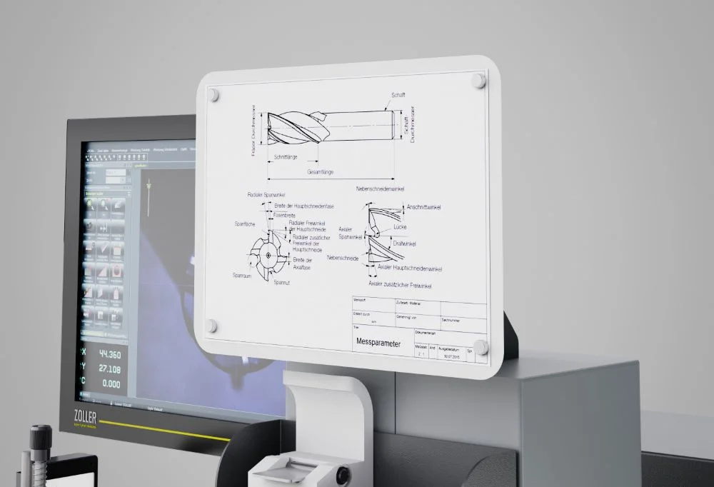Ist ideal, um Zeichnungen in unmittelbarer Messnähe anzubringen. Das Magnet-Kugelgelenk erlaubt eine flexible und für die Bedienerin und den Bediener optimale Ausrichtung. Durch Magnete können die Zeichnungen einfach fixiert und schnell gewechselt werden.