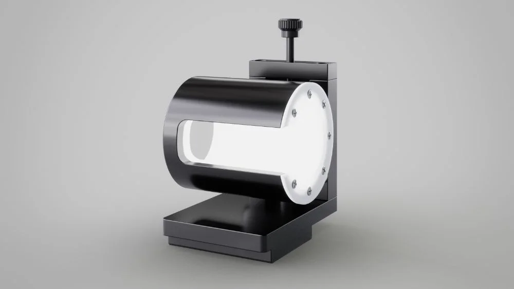 Der Diffusor (LED-Flachlicht) ermöglicht die Durchlichtmessung im Umfangsbereich. Hierzu wird der Diffusor gegenüber dem Video-Mikroskopsystem positioniert. Somit können Außenkonturen, Stufenlängen, Spitzenwinkel u.v.a.m. gemessen werden.