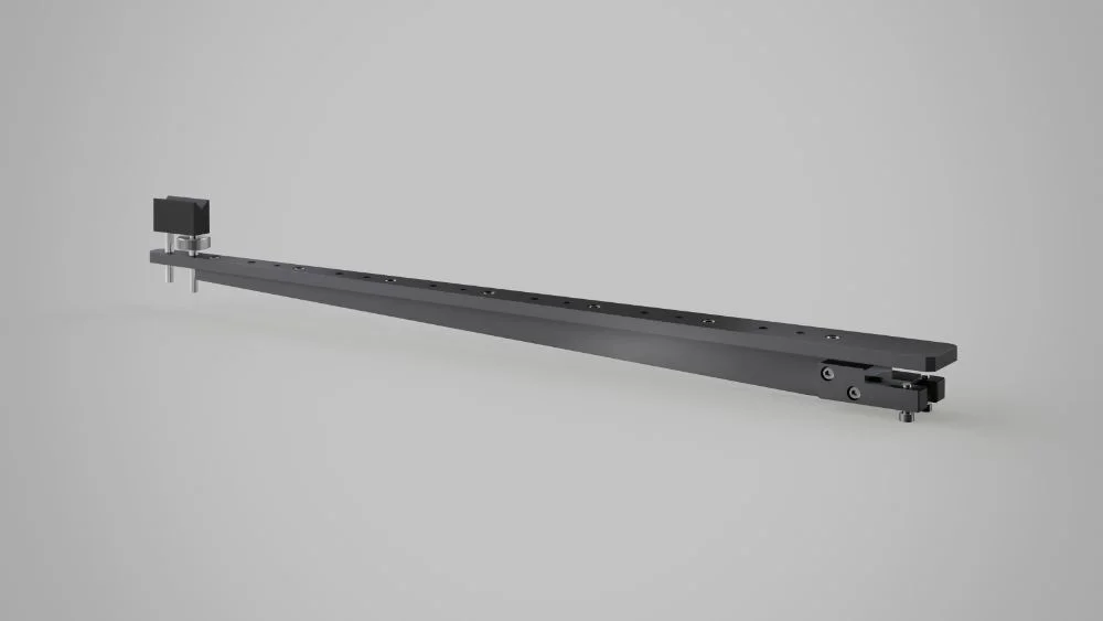 Abstützung für überlange Werkzeuge D 3 mm bis D 20 mm bis zu einer Länge von 1000 mm. Das Prisma ist in der Auflagehöhe verstellbar. Die Anbindung an den verlängerten Schwenktisch erfolgt mechanisch.