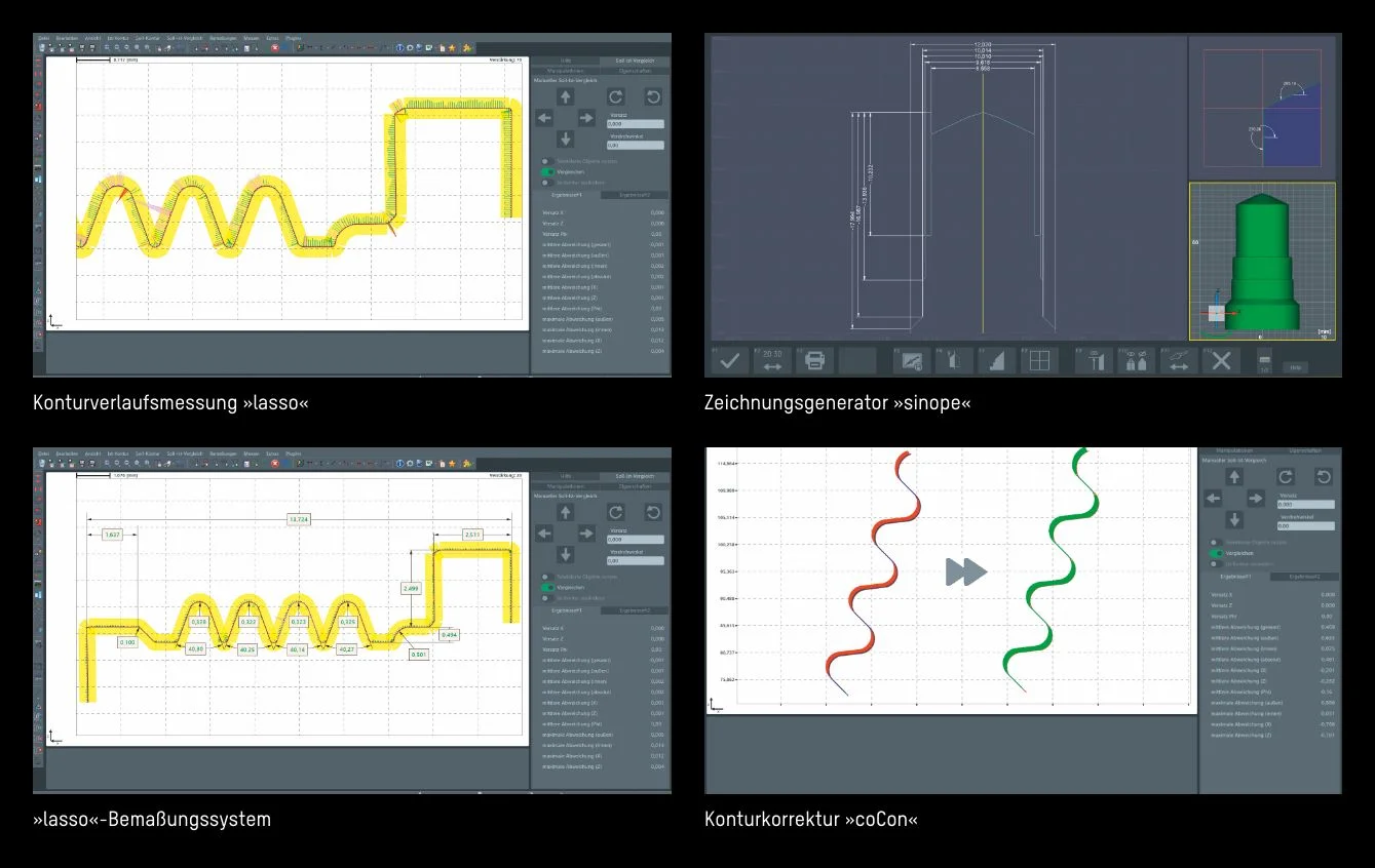Konturkorrektur für Formwerkzeuge – Soll-Ist-Vergleich der gescannten Kontur mit der Sollkontur im DXF-Format. Die Software »coCon« invertiert die Abweichungen und erzeugt eine Konturkorrektur, die als neue DXF-Datei an die Maschine übertragen wird.