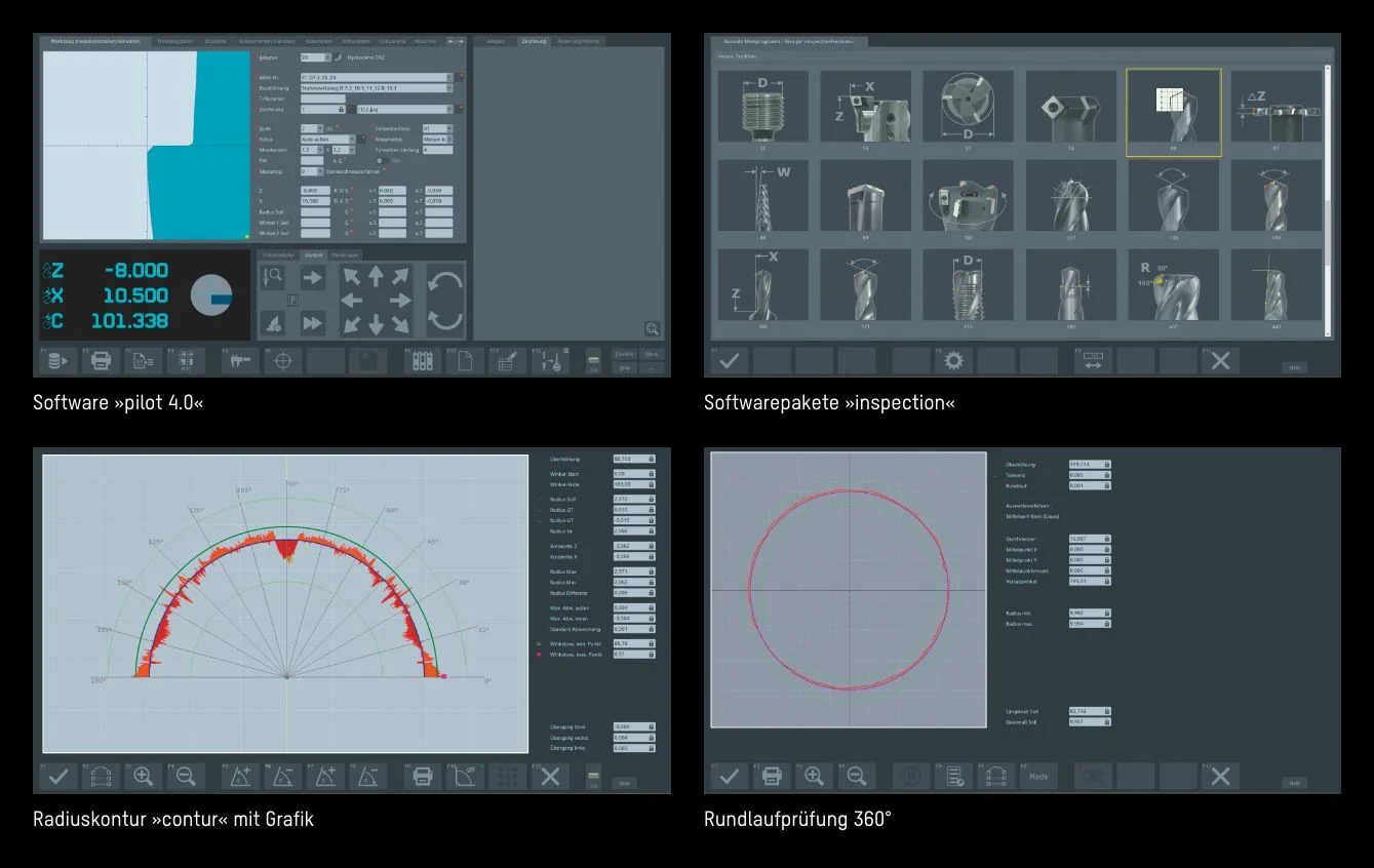 »pilot 4.0« hat sich als leistungsstarke und umfassende Softwarelösung für alle ZOLLER Einstell-, Mess- und Prüfgeräte etabliert. Die intuitive, grafische Bedienerführung leitet die Anwenderin und den Anwender schnell und sicher zum präzisen Messergebnis. Dank »pilot 4.0« gelingen so selbst komplexe Messaufgaben auf Anhieb. Gleichzeitig ist die Software so umfangreich in der Funktionalität, dass es für jede Anforderung eine Lösung gibt. Nicht umsonst gilt »pilot« als weltweit unerreichter Maßstab für das Messen, Prüfen und Verwalten von Zerspanungswerkzeugen.