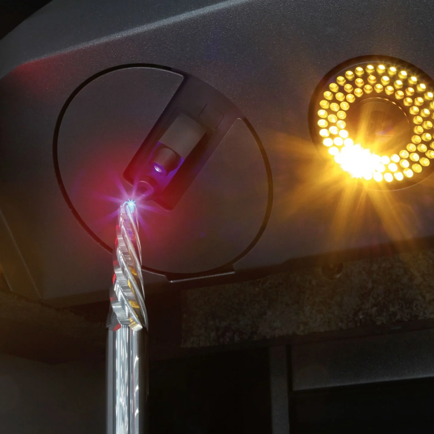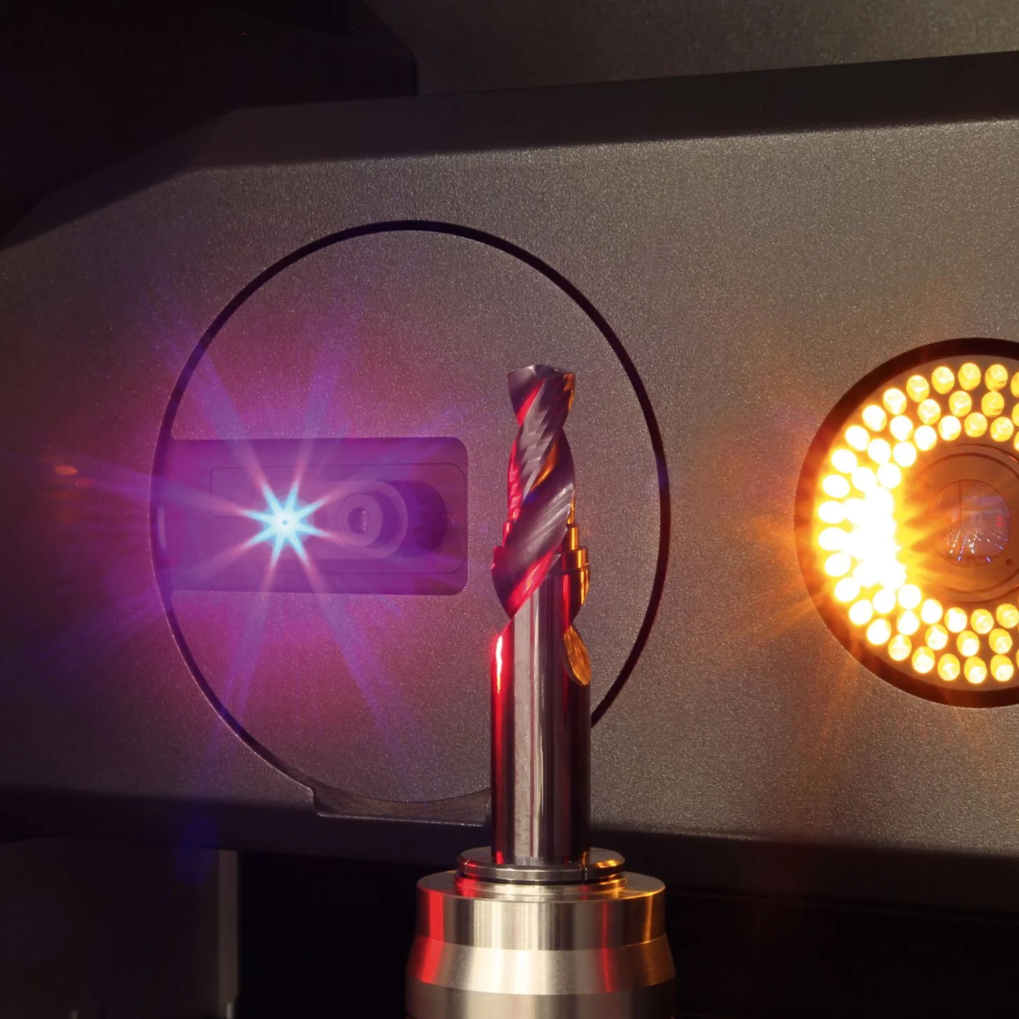 Auflichtkamera mit Multi-LED-Segment-Beleuchtung und CNC-Schwenkeinrichtung – zur Inspektion und automatischen Messung von Werkzeuggeometrien am Umfang, im Spanraum und an der Stirn. Einfach die Sollparameter im Messprogrammdialog eingeben und jede Messgröße wird automatisch gemessen und protokolliert: Spanwinkel, Freiwinkel, Nutkontur, Fasenbreite und viele weitere Geometrien. Die in acht Bereiche segmentierten Hochleistungs-LEDs werden automatisch vom Messsystem gesteuert und gewährleisten durch die automatische Intensitätsregelung eine optimale Ausleuchtung der Oberfläche – für hohe Präzision und Wiederholgenauigkeit. Die Ausstattung der Sensorik ist konfigurierbar.