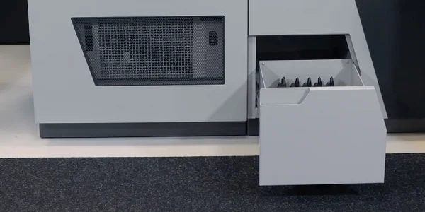 Das Material ist optimal auf die Aufnahmetöpfe abgestimmt, sodass ein Verschieben des Werkzeugs leicht, geräuscharm und schnell ausgeführt werden kann.