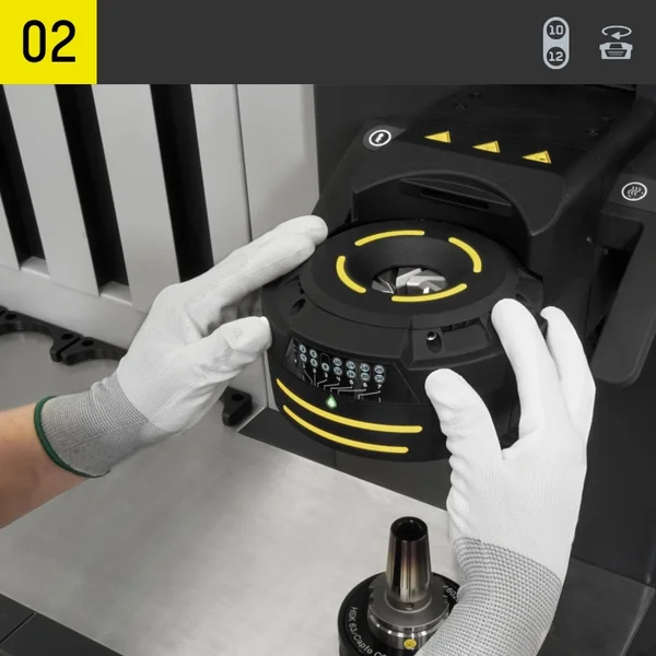 Die klar strukturierte grafische Darstellung der ZOLLER »pilot« Software leitet die Bedienerin und den Bediener mithilfe großer Funktions-Buttons und einem durchdachten Farbkonzept intuitiv und sicher Schritt für Schritt durch den Bediendialog. Der 12,5-Zoll-Monitor überzeugt dabei durch eine gestochen scharfe Darstellung.