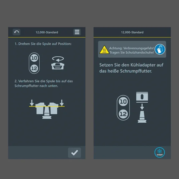 Die Technologie des »powerShrink« sorgt für kürzeste Prozessfunktionen. Die daraus resultierenden kurzen Prozesszeiten erreichen auch unerfahrene Bedienerinnen und Bediener schon nach kurzer Einarbeitung. Die Bediensoftware »pilot« leitet Sie durch alle Arbeitsschritte und steuert viele Abläufe vollautomatisch. Die Software zeigt für jeden Arbeitsschritt die Komponente an, die benötigt wird, und unterstützt Sie visuell mithilfe von grafischen Anzeigen auf dem Bildschirm und dem wegweisenden ZOLLER-Bedienkonzept »actbyLight«. Die lichtgesteuerte Bedienerführung für den sicheren und effizienten Einsatz des »powerShrink« in Ihrem Unternehmen.