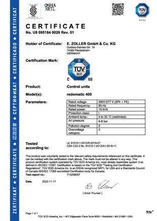 Certificate »redomatic 400« 947 KB -