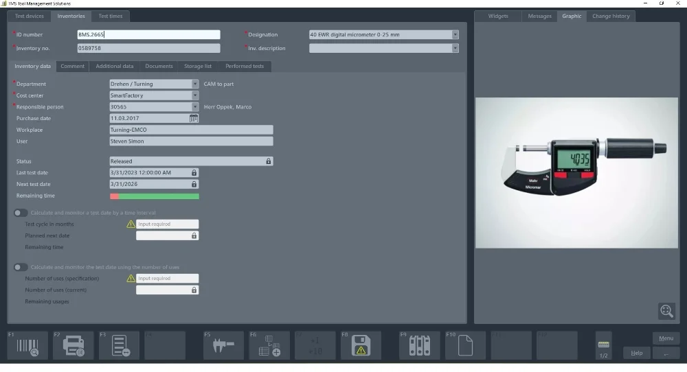 Moderne Unternehmen, die nach ISO 9001 und anderen Qualitätsnormen zertifiziert werden, sind dazu verpflichtet, ein Verwaltungssystem für die Kalibrierung ihrer Prüfmittel und Kalibratoren vorzuweisen. Hier bietet ZOLLER mit der Prüfmittel­verwaltung ein komfortables System, mit dem beliebige Prüfmittel sowie Kalibratoren verwaltet und überwacht werden können. Der Anwender kann Prüfpläne integrieren und Dokumente einbinden. Neben der Überwachung der Kalibrier­intervalle, in Abhängigkeit von Zeit oder Verwendung, können für jedes Prüfmittel beliebige Prüfpläne gestaltet und zugeordnet werden.