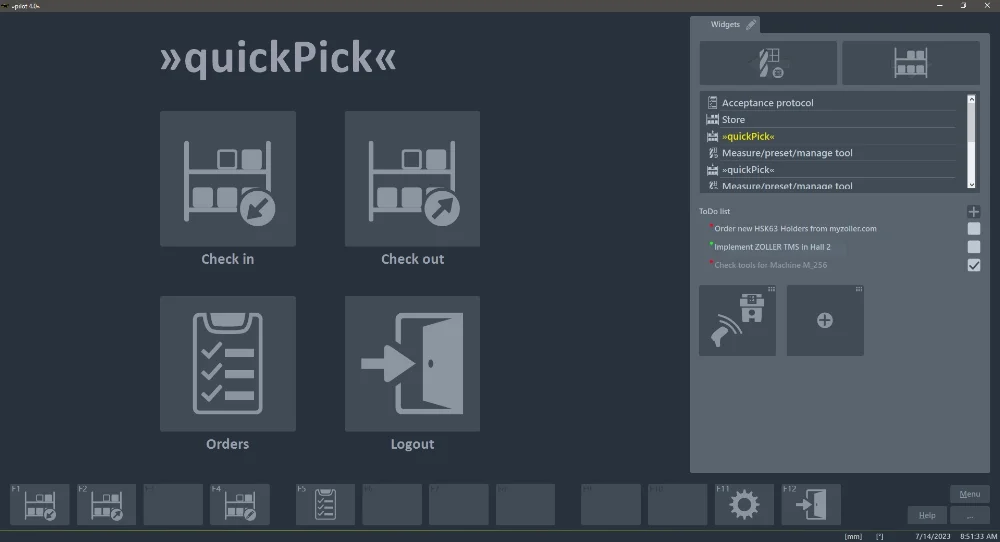Das Lagermodul »quickPick« ist die einfache Lageroberfläche für die Handhabung von Einzel­komponenten, Komplett­werkzeugen, Vorrichtungen, Aufträgen und Zubehör. Mit wenigen Klicks führen Sie Lagerbuchungen durch.