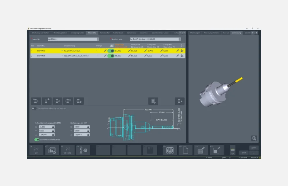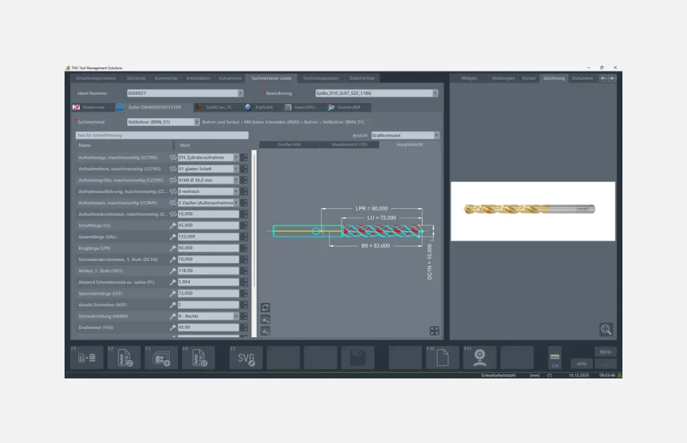 Der Funktionsumfang des BRONZE-Pakets ergänzt das Toolmanagement mit Schnittstellen zu CAD/CAM-Systemen. Neben der wirtschaftlichen Verwaltung von Einzelkomponenten, Komplettwerkzeugen, Einrichteblättern und Zubehör nutzen Sie CAD- und CAM-Daten entlang des Workflows. Optimieren Sie mit Werkzeugdaten die Prozesskette von CAM-to-Part.