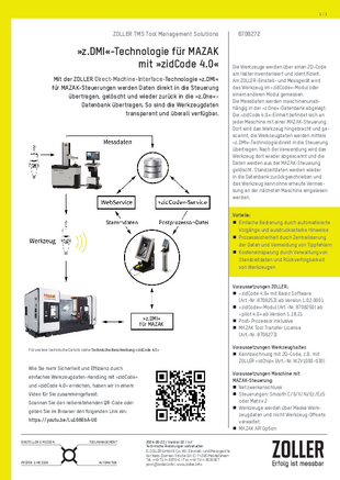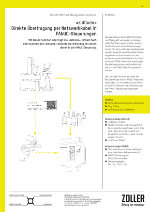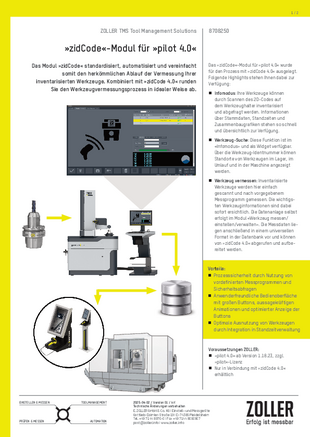 Werkzeugidentifikation und Datenübertragung: »zidCode« (ZOLLER-Identifikationscode)