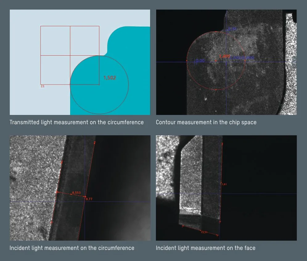 The ZOLLER »smileCheck« and »smartCheck« device series with high-quality, industry-standard optics: For example, cutting edge radii, angles, lengths, diameters, etc. can be measured automatically and with μm accuracy in transmitted light on the outer contour of the tools.