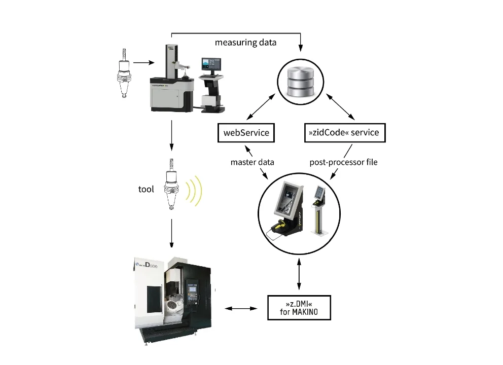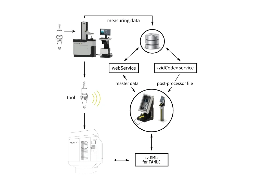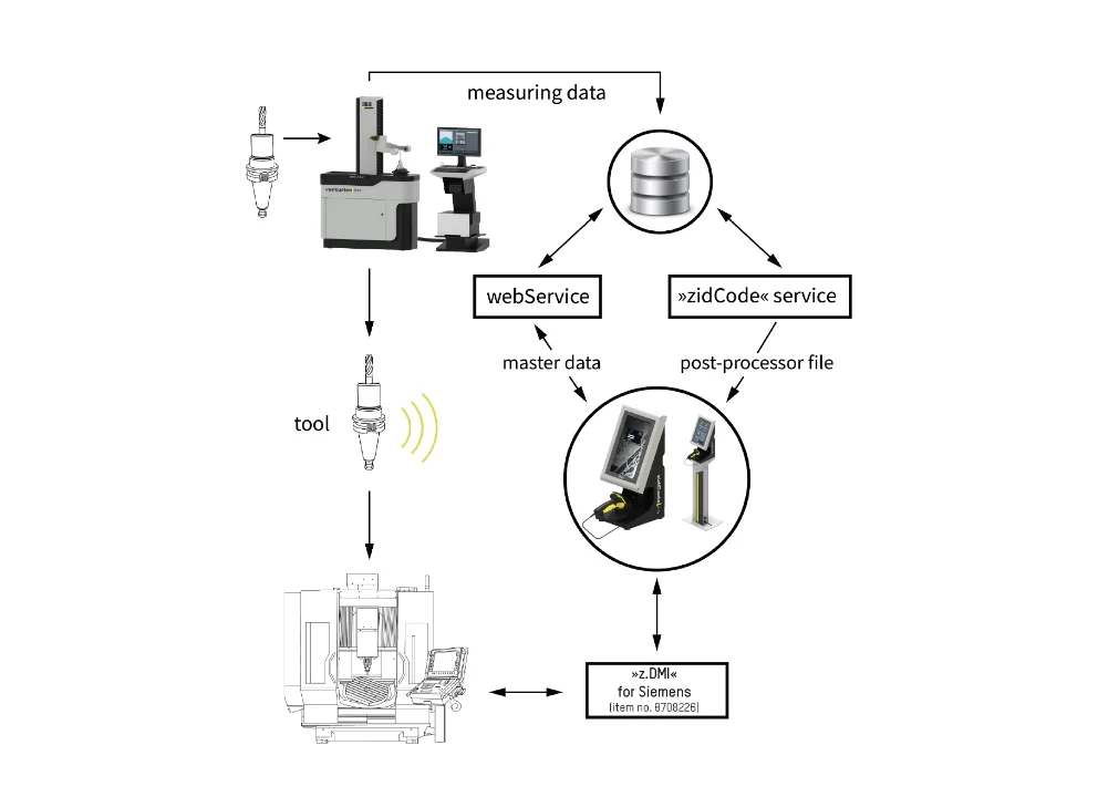 ZOLLER »z.DMI« Technology enables the direct transfer of tool data to the tool memory of the machine control and back to the z.One Database.